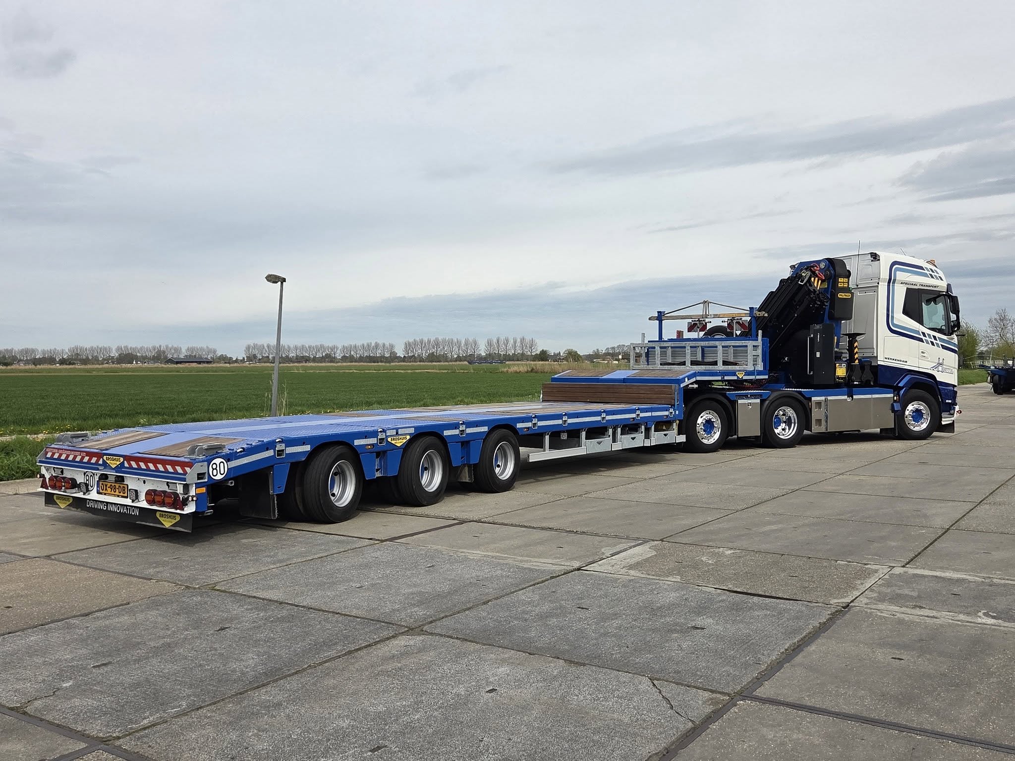 De oplegger is één van de eerste semi- diepladers van de nieuwe generatie van Broshuis met als belangrijkste kenmerk het lagere eigen gewicht bij een toegenomen sterkte.