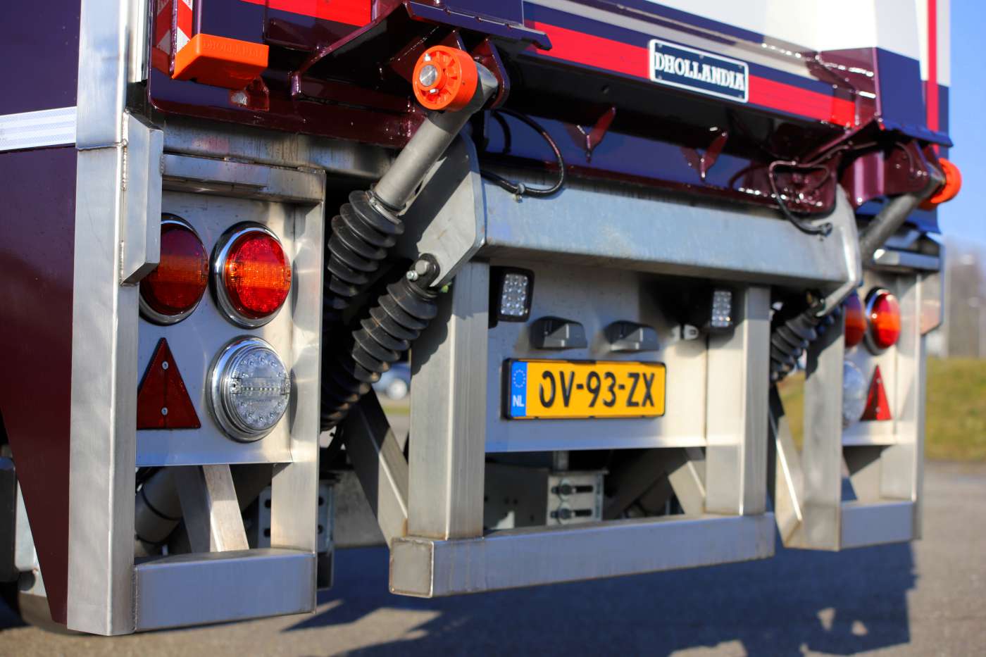 De nieuwe Heiwo oplegger is de eerste van Chris Kortekaas met een achtersluitende D'Hollandia laadklep. Hiervoor werd gekozen vanwege de vele laadadressen bij kwekers, en dan werkt dit sneller. De oplegger is voorzien van een gedwongen gestuurde laatste as en een RVS achterkader.