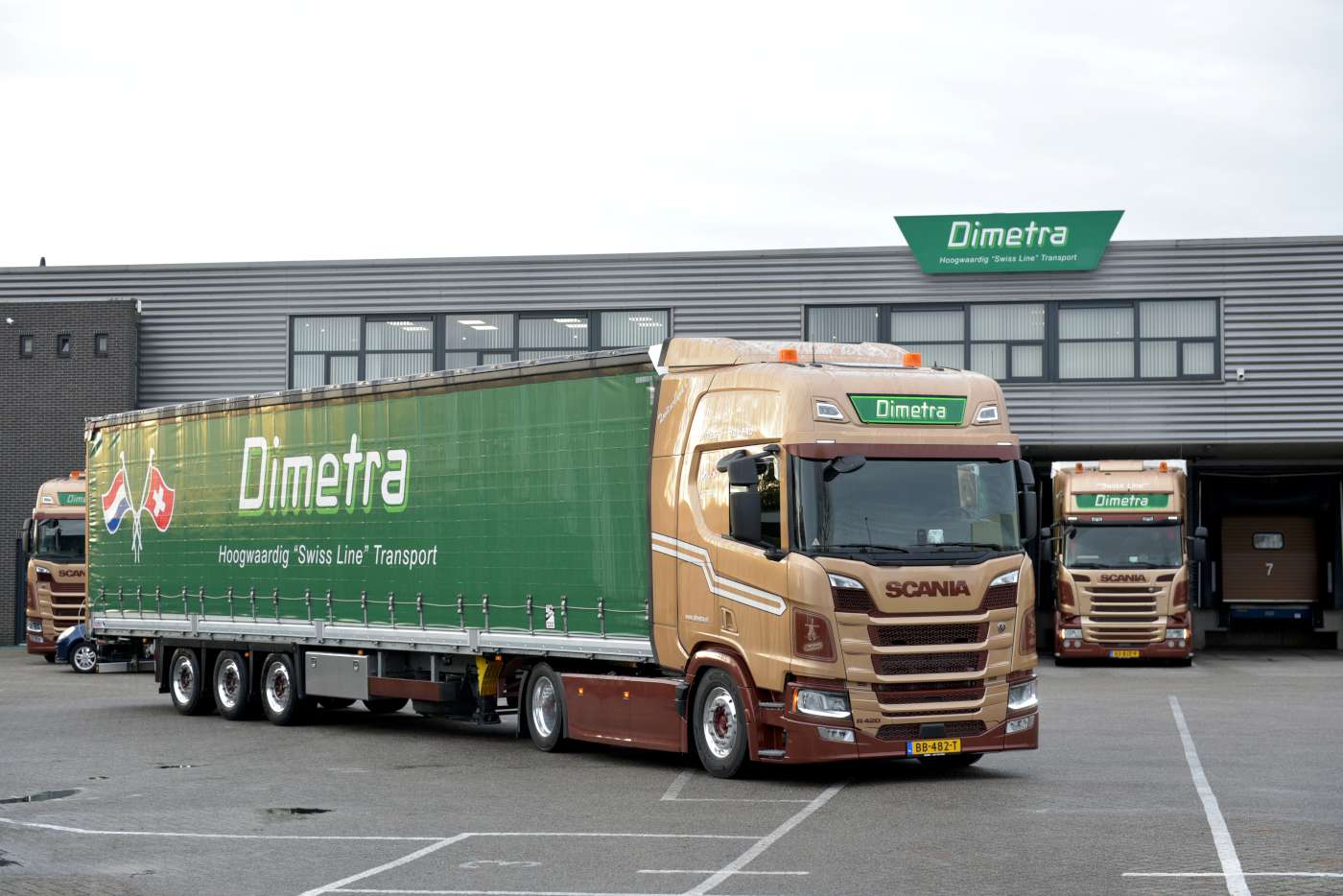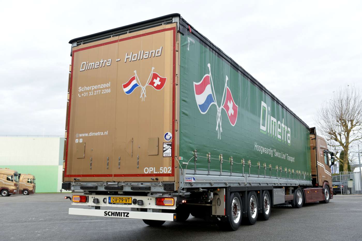 Dimetra Holland heeft als specialiteit stukgoed transport van- en naar Zwitserland, maar is ook in de omringende landen actief. Daarvoor zet het bedrijf dagelijks een vloot van 56 trucks en 79 opleggers in. Dimetra Holland bestaat volgend jaar 50 jaar en de relatie met Schmitz Cargobull partner Bouwheer Zeewolde bestaat al meer als 40 jaar. Een bijzonder hechte relatie dus, en dat heeft geresulteerd in een marktaandeel in het opleggerpark van zo’n 95%.