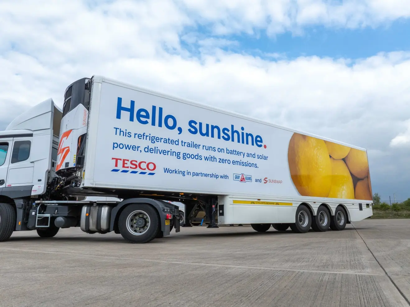 De accu's die de koelmotor voeden worden opgeladen met zonne energie, maar de oplegger kan ook aan de stekker bijgeladen worden. In Australië werd een test gedaan over 1671 kilometer met een vracht ingevroren vlees, zonder tussentijds bij te laden of stroom af te nemen van de trekker.